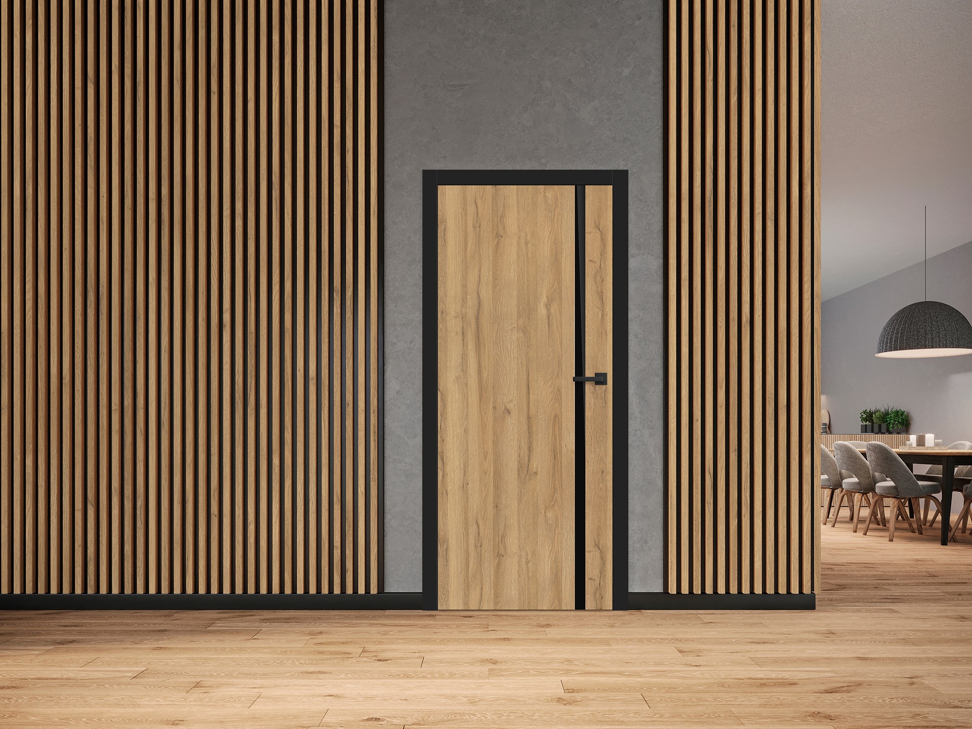 KERESZTEREZETES NATÚR TÖLGY PREMIUM KIVITELBEN az ajtószárny éle fekete